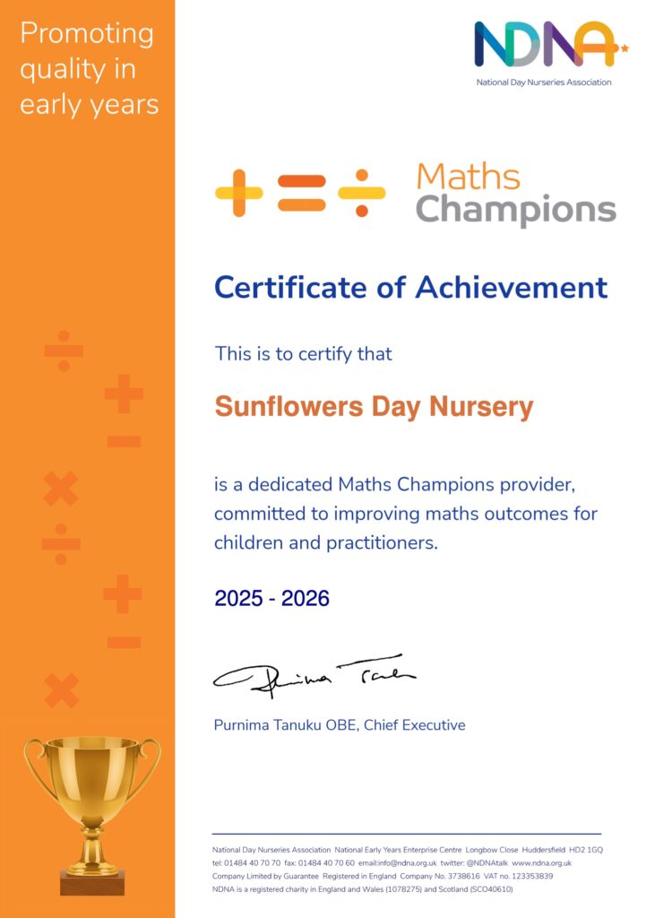 Our lovely Becky & Vicky have been working really hard and have completed the NDNA’s Maths Champion Programme. This has included an intense ‘dive’ into the world of Early Years Maths – auditing staff confidence levels, auditing our resources and looking at the children’s Mathematical confidence and understanding before and after the introduction of new resources and activities. This pushed both Becky and Vicky a little out of their comfort zone as the course required quite a lot of technological confidence and they have both learnt new computer skills as well as brushing up on their Maths. We are really proud to be part of the NDNA Maths Champions community and really proud of the effort Becky & Vicky have put in. We know that our 3bees and Pre Schoolers have really benefitted from, (and will continue to benefit from) the staff teams confidence and ideas. I am really proud of them and I hope you are too! Last night we had a staff training session and Becky & Vicky confidently led the team through the language of Maths and how this impacts upon children’s learning. Watch this space for more Maths news! H x